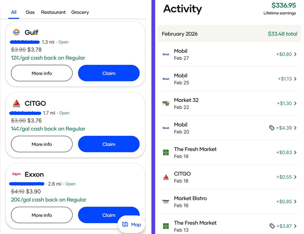 I usually get anywhere from a few cents to 20¢+ per gallon back. It’s not huge savings every single time, but for something you’re already buying anyway, it adds up more than you’d expect.